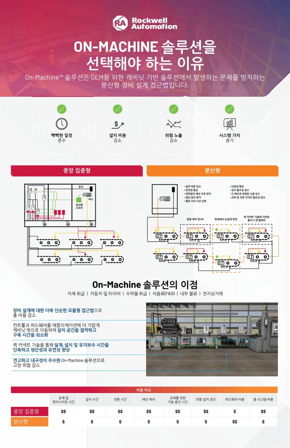 . ArmorKinetix 분산형 서보 드라이브는 모션 컨트롤 요구에 맞는 확장 가능한 모듈식 솔루션을 제공합니다. 전기 캐비닛 외부에 드라이브를 장착하면 시스템 복잡성을 크게 줄이고 총 시스템 비용을 낮추며 인력의 생산성을 높일 수 있습니다.