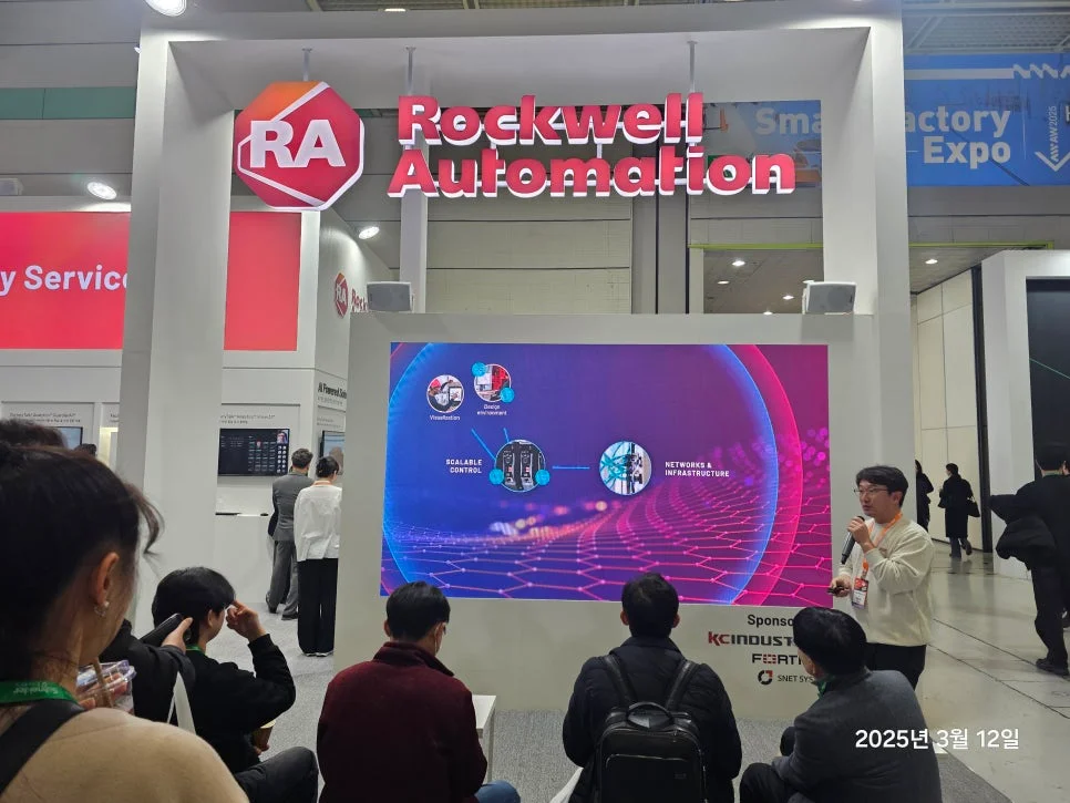 로크웰 오토메이션은 **"산업 운영의 미래 창출"**이라는 주제로, 스마트 제조를 위한 혁신적인 기술과 디지털 트랜스포메이션을 지원하는 솔루션을 선보였습니다. 현장에서 전문가들의 설명을 들으며, 실제 제조 환경에서 어떻게 적용될 수 있는지 깊이 있는 논의를 나눌 수 있었습니다.