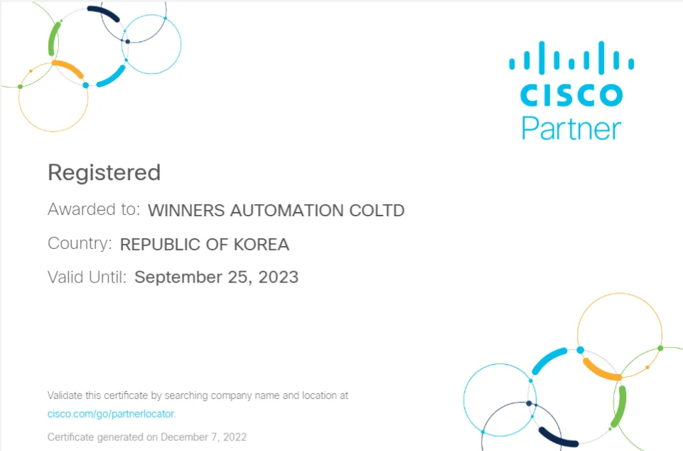 저희 위너스오토메이션은 시스코(Cisco) 와 함께 최신 자동화 기술을 적용하여 여러 산업 분야의