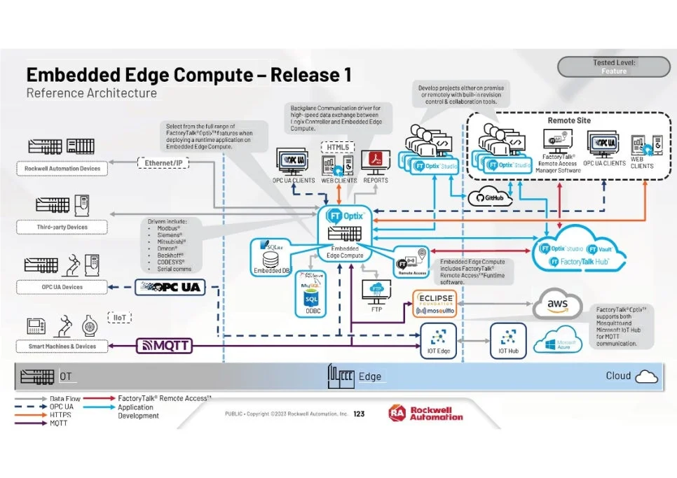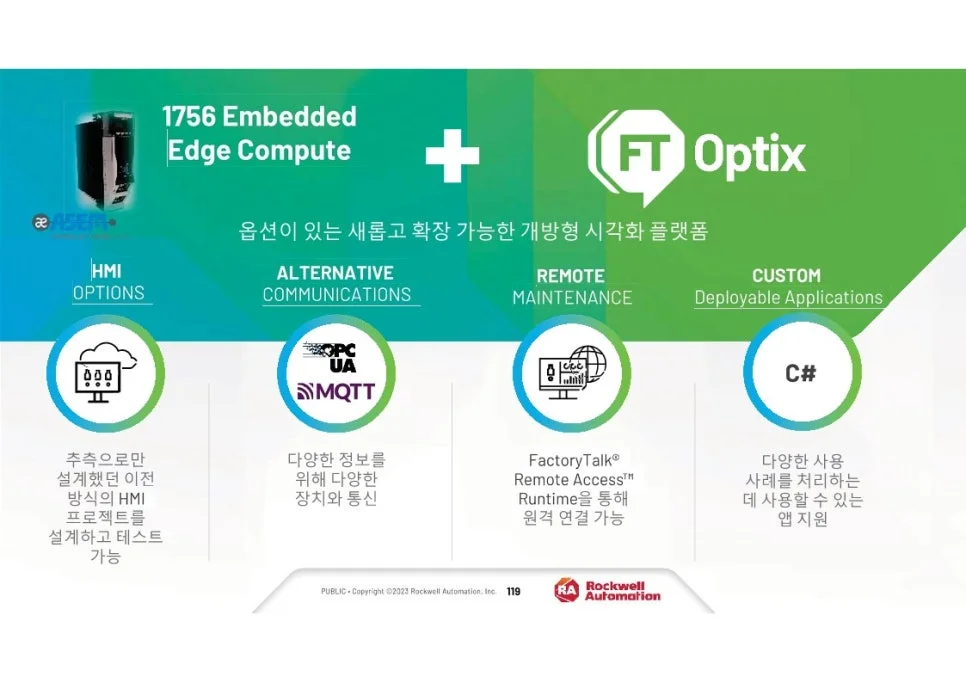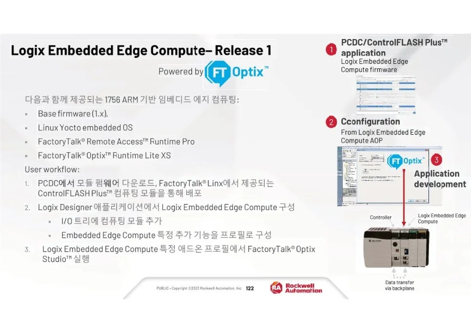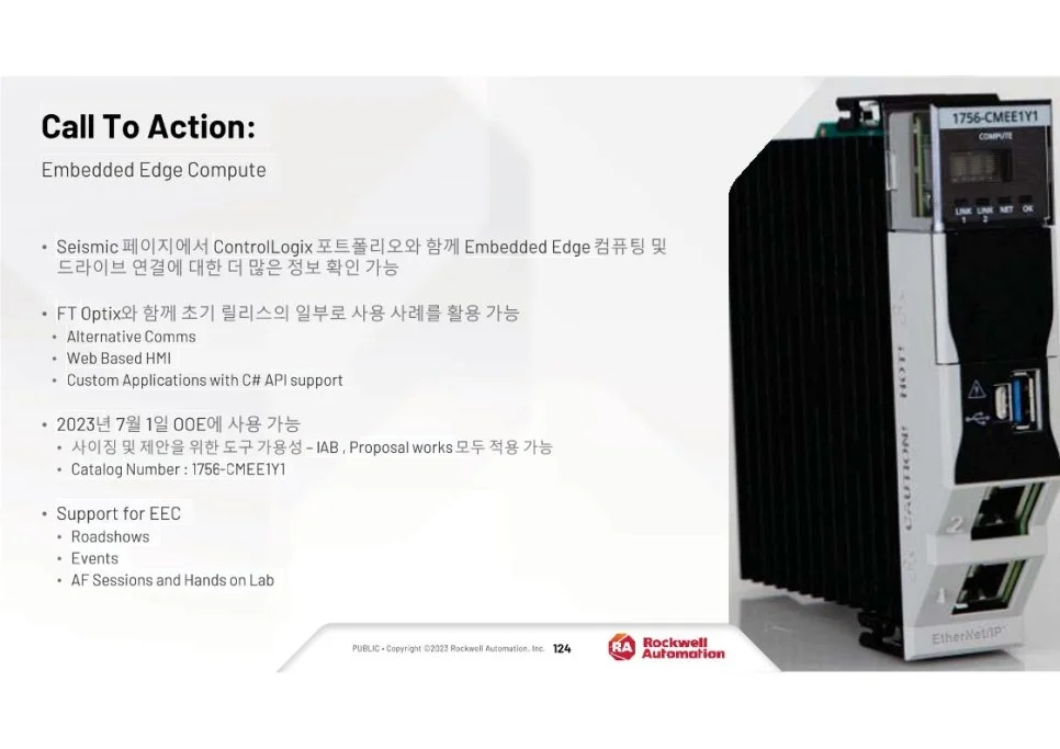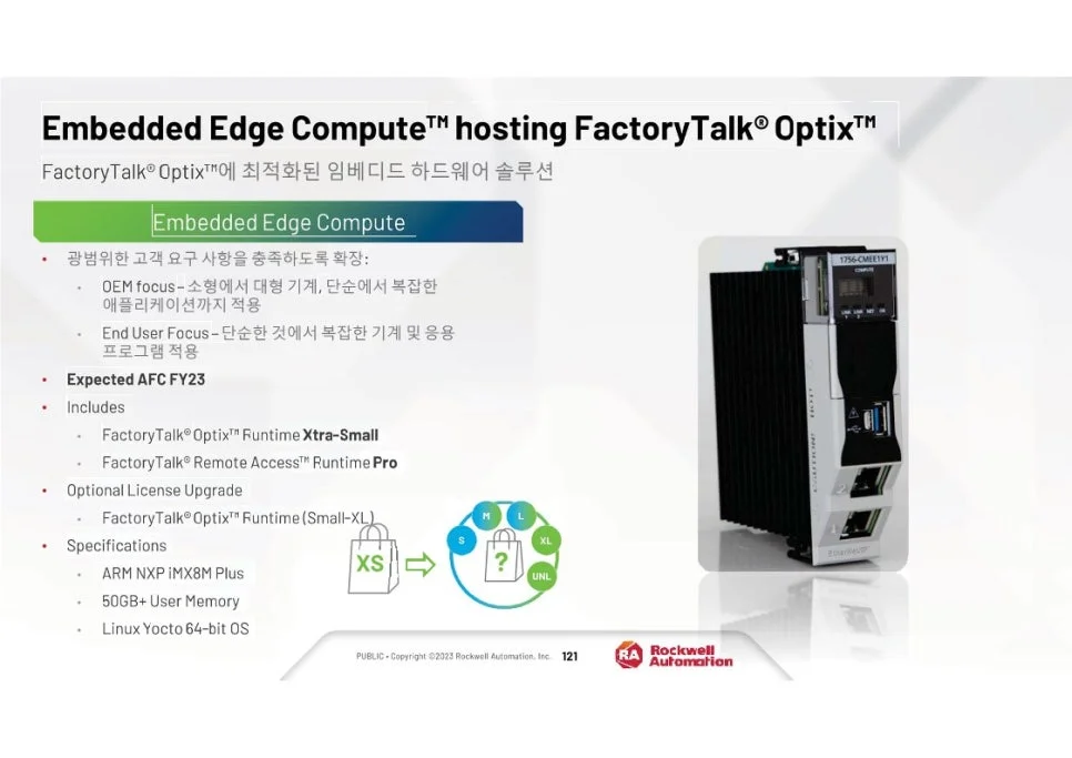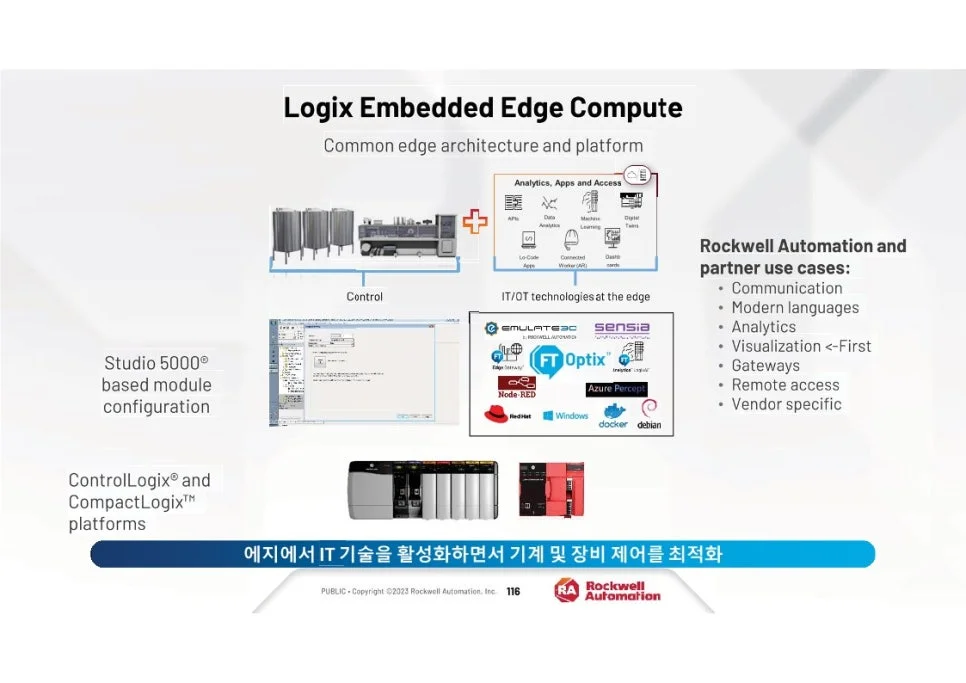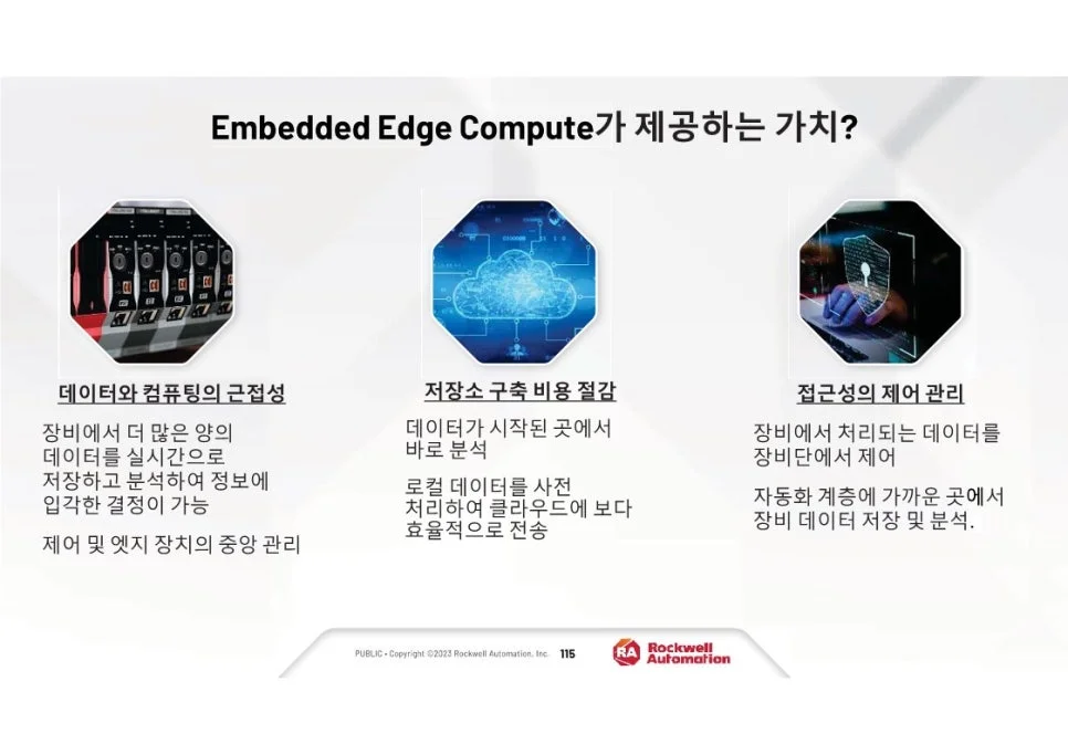 엣지 컴퓨팅 기능을 데이터 분석 소프트웨어와 통합하면 중요한 데이터 처리가 원하는 속도로 이루어질 수 있어 액세스 성능과 응답성이 향상됩니다. FactoryTalk® Optix™ 및 FactoryTalk® Remote Access™를 호스팅할 수 있는 기능을 갖춘 Embedded Edge Compute Module은 요구 사항 변화에 따라 시스템을 확장하고 확장할 수 있는 기능을 유지하면서 시각적 데이터를 로컬 및