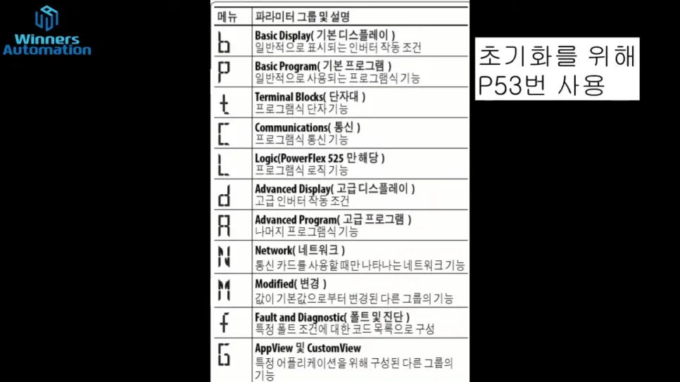 위 영상 링크를 클릭하시면 위너스오토메이션 PowerFlex 525 #3 AB 인버터 공장초기화 방법이