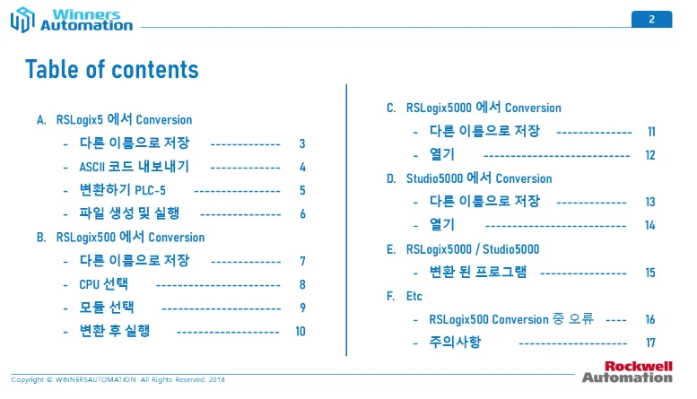 위너스오토메이션입니다. 위너스오토메이션에서는 다양한 RSLogix 파일 변환 작업을 지원하기 위해,