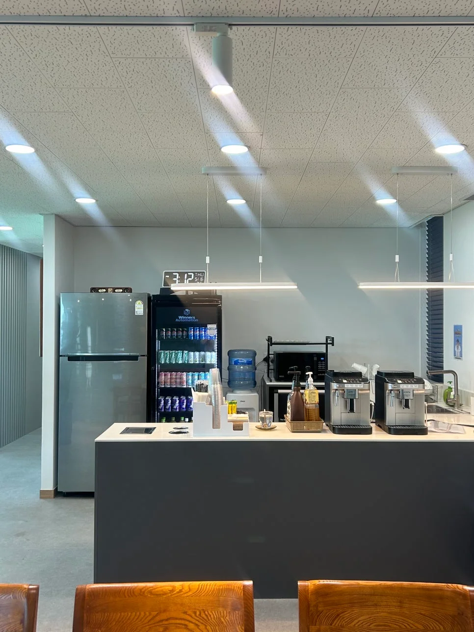 힐링 라운지의 음료 냉장고와 커피 머신, 음료 제조 시럽 등 다양한 음료를 무한 대로 제공하고 있으니, 임직원 여러분들이 편안하게 방문 하여 휴식을 취할 수 있습니다.