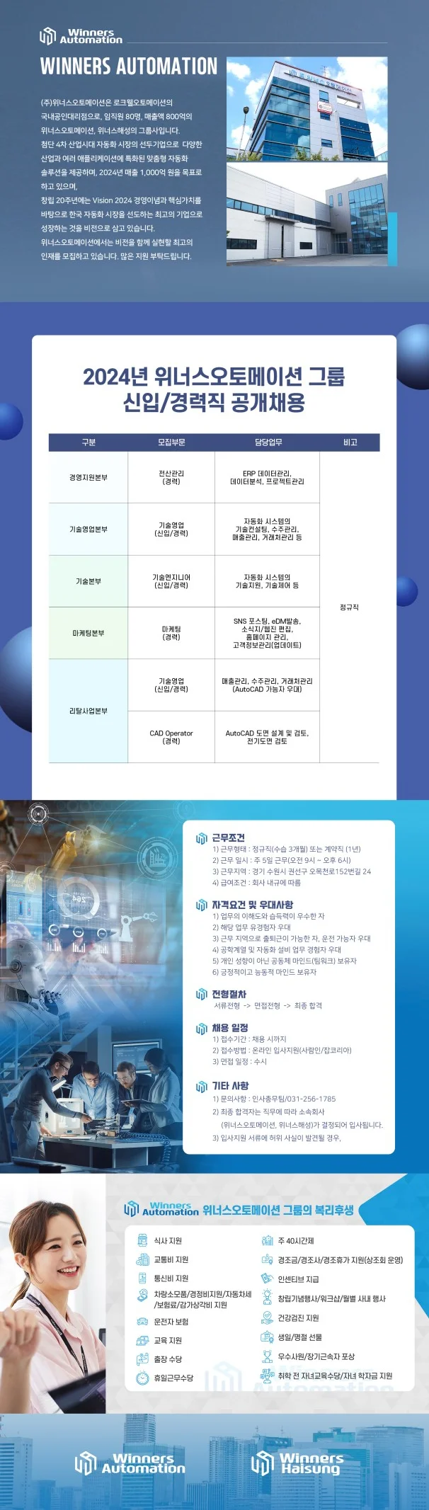 자세한 내용 및 복리후생은 위너스오토메이션 홈페이지에서 확인 하실 수 있습니다.
