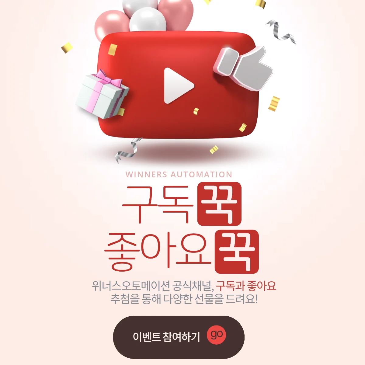 위너스오토메이션에서 유튜브 구독&인증 이벤트를 준비했습니다! 💖